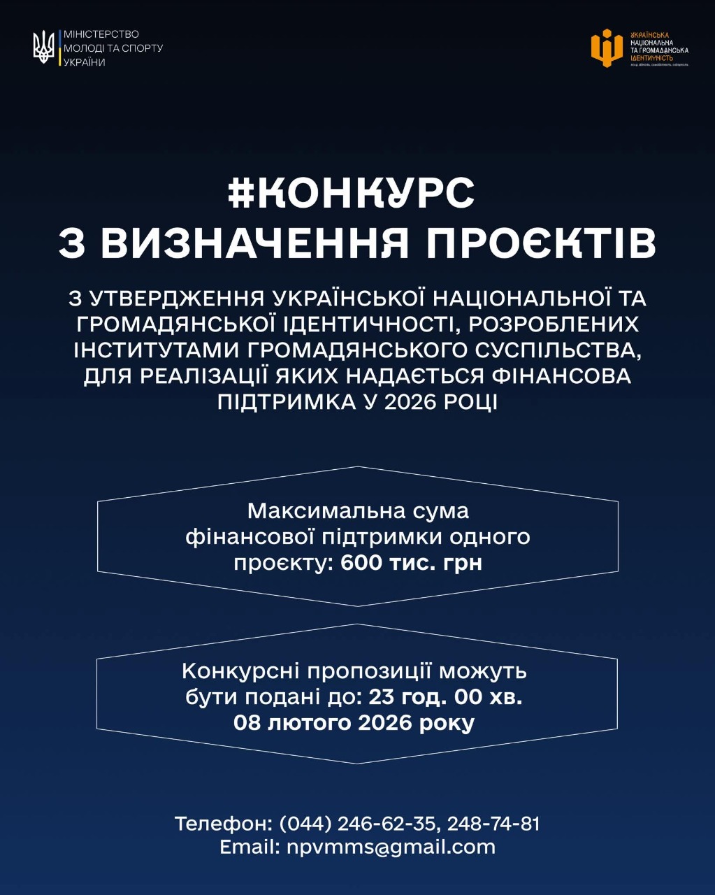 Запрошують подати проєкти, спрямовані на утвердження української національної та громадянської ідентичності.