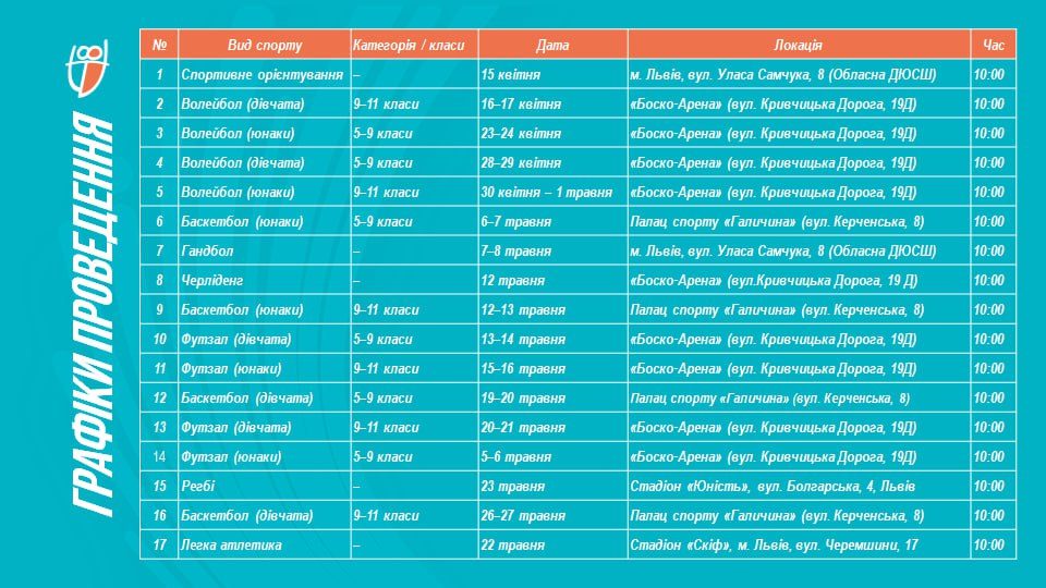 У планах — залучити 144 команди з баскетболу, волейболу, футзалу, черліденгу, регбі, гандболу та спортивного орієнтування, а це понад 2000 дітей.