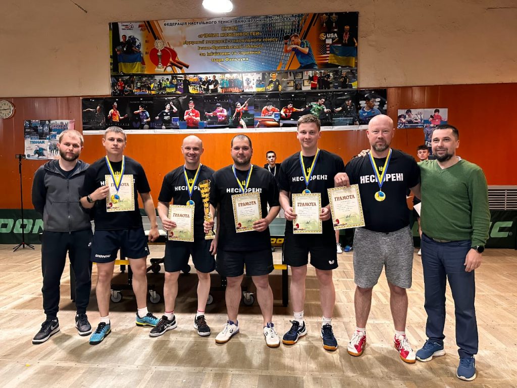 Путівку в першу лігу виборола команда «Нескорені» зі Львова. Колектив складається з військовослужбовців ЗСУ, НГУ та ветеранів, які після поранень повернулися до активного життя через настільний теніс, продовжує вражати своєю стійкістю та результатами. Команда виступала під керівництвом тренерів Сергія Калитюка та Дмитра Козака в складі Олексія Сарматова, Владислава Ратушняка, Романа Гороха, Юрія Кунця, Германа Золотарьова, Сергія Калитюка, В’ячеслава Кайстра, Сергія Кунинця.